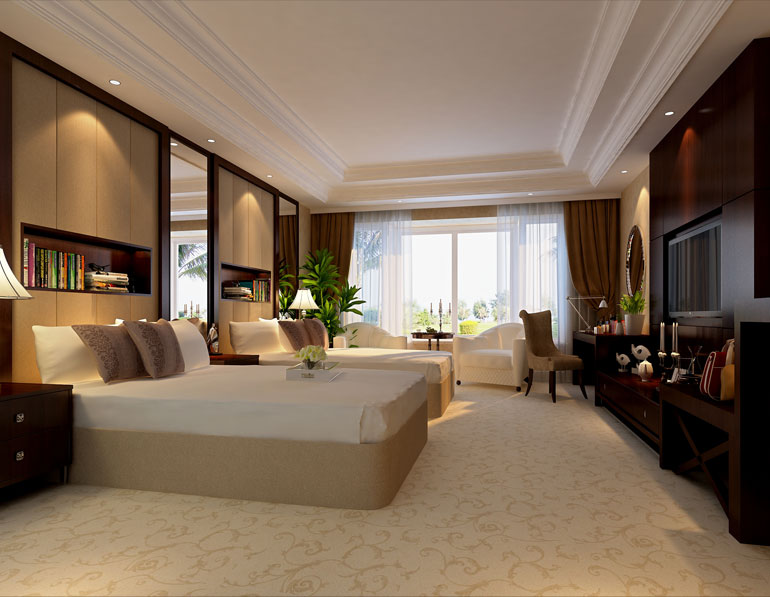工程說明:此酒店的設計中,根據(jù)不同區(qū)域的功能而進行分區(qū)設計。例如酒店客房的設計中,溫暖舒適,給人賓至如歸之感。整個設計將實用和唯美的理念相融合。