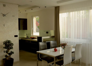 居室裝飾主要指確定墻面、地面、頂棚的材質、花色、圖案、紋理及做法。室內墻面裝 飾的作用是保護墻體,滿足室內使用功能要求,同時提供美觀、整潔的生活環境。室內墻面 與人的距離近,因而所用的裝飾材料不能有氣味,人接觸后不能污染衣物,質感應柔和細膩。 居室內的裝飾最好有一定的透氣性。地面或頂棚裝飾除美觀外還有隔音、防潮等作用,材料 的選擇應根據使用功能的需要,并與室內裝飾的整體協調。